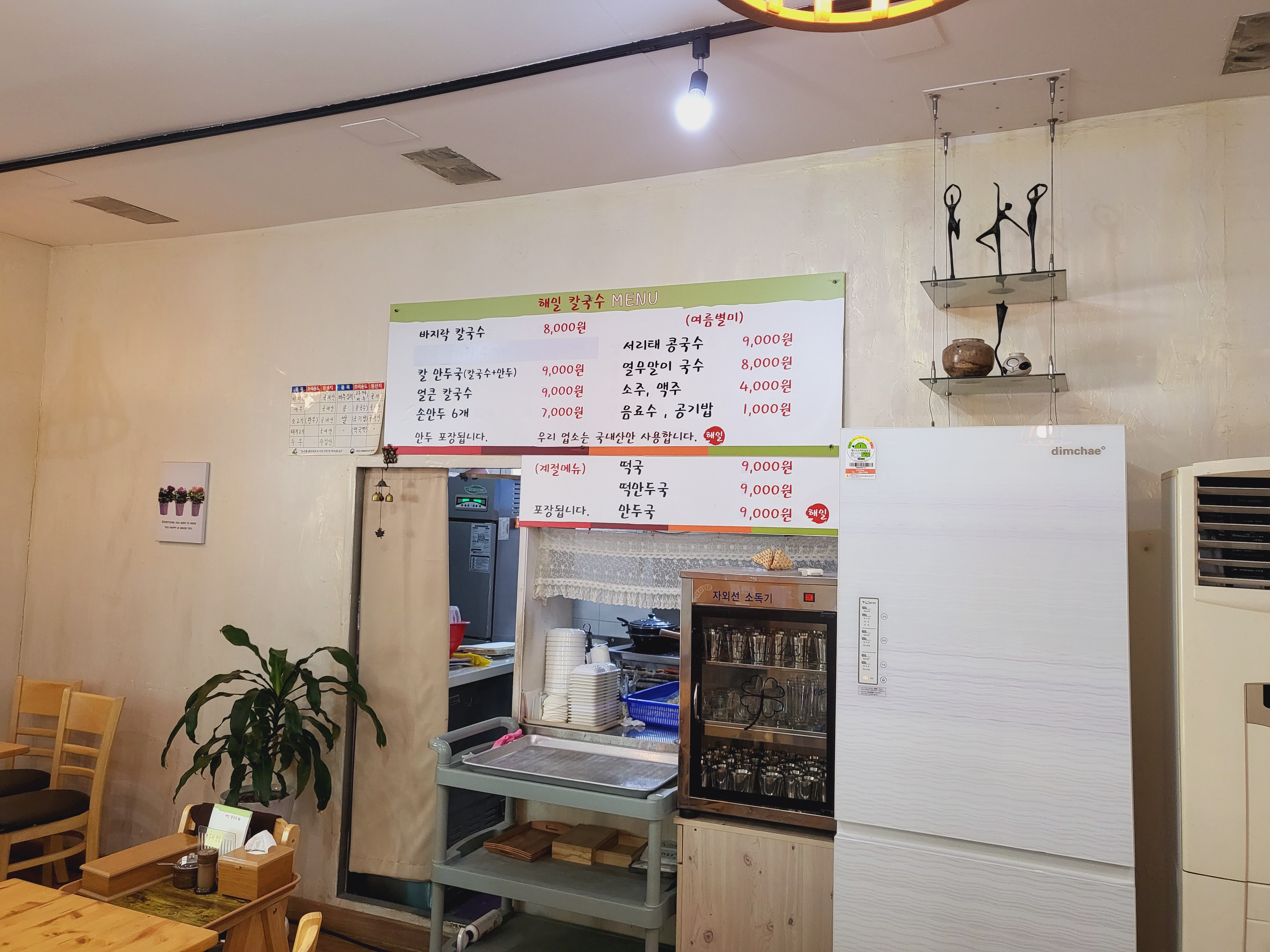 해밀칼국수 내부 테이블 탁자 모습