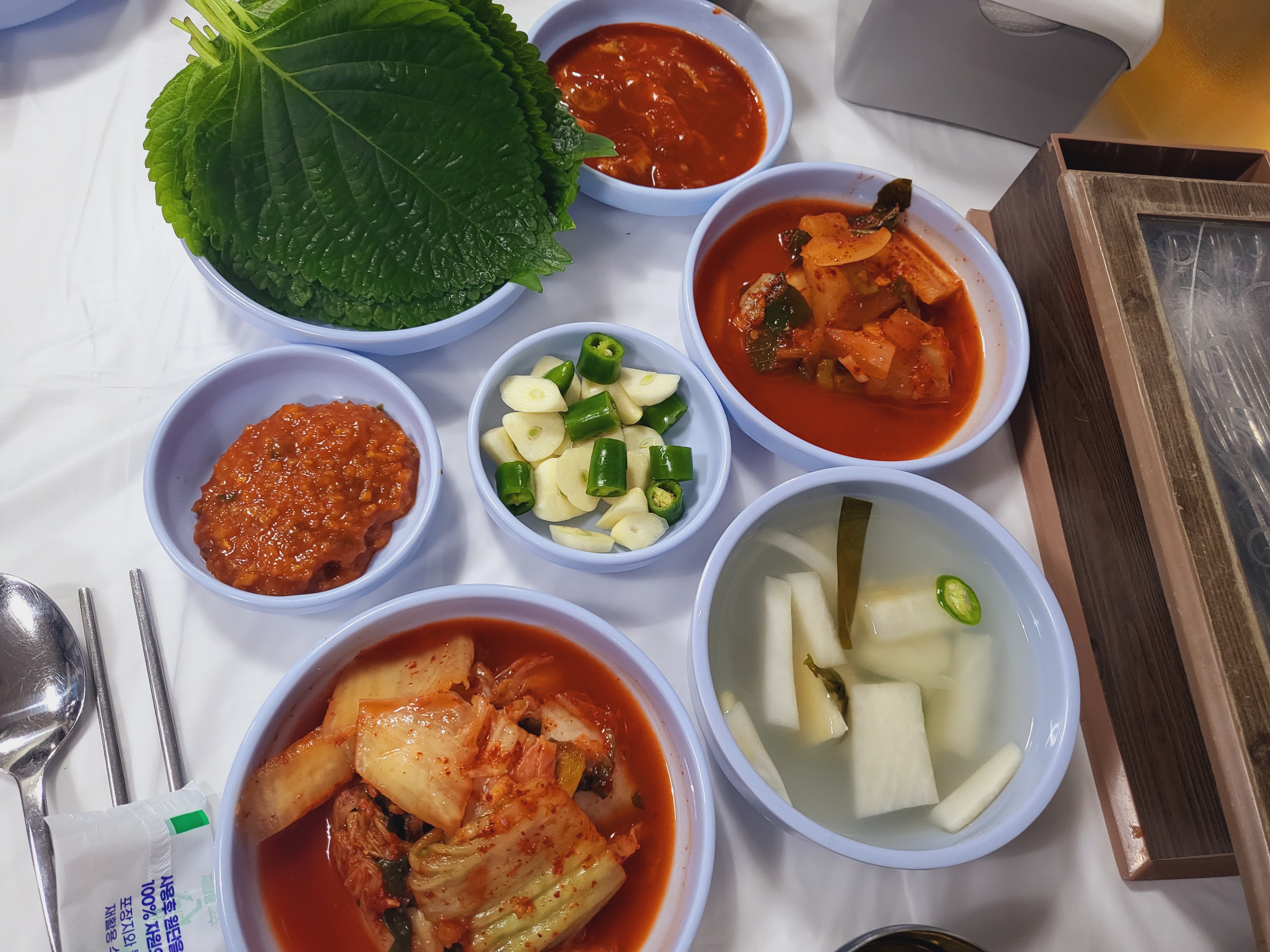 깻잎에 부드러운 붕장어 탱글 낙지에 마늘이 고추 쌈장 조합!!! 식감이 미쳤어요!!! 아 또 생각나 .....