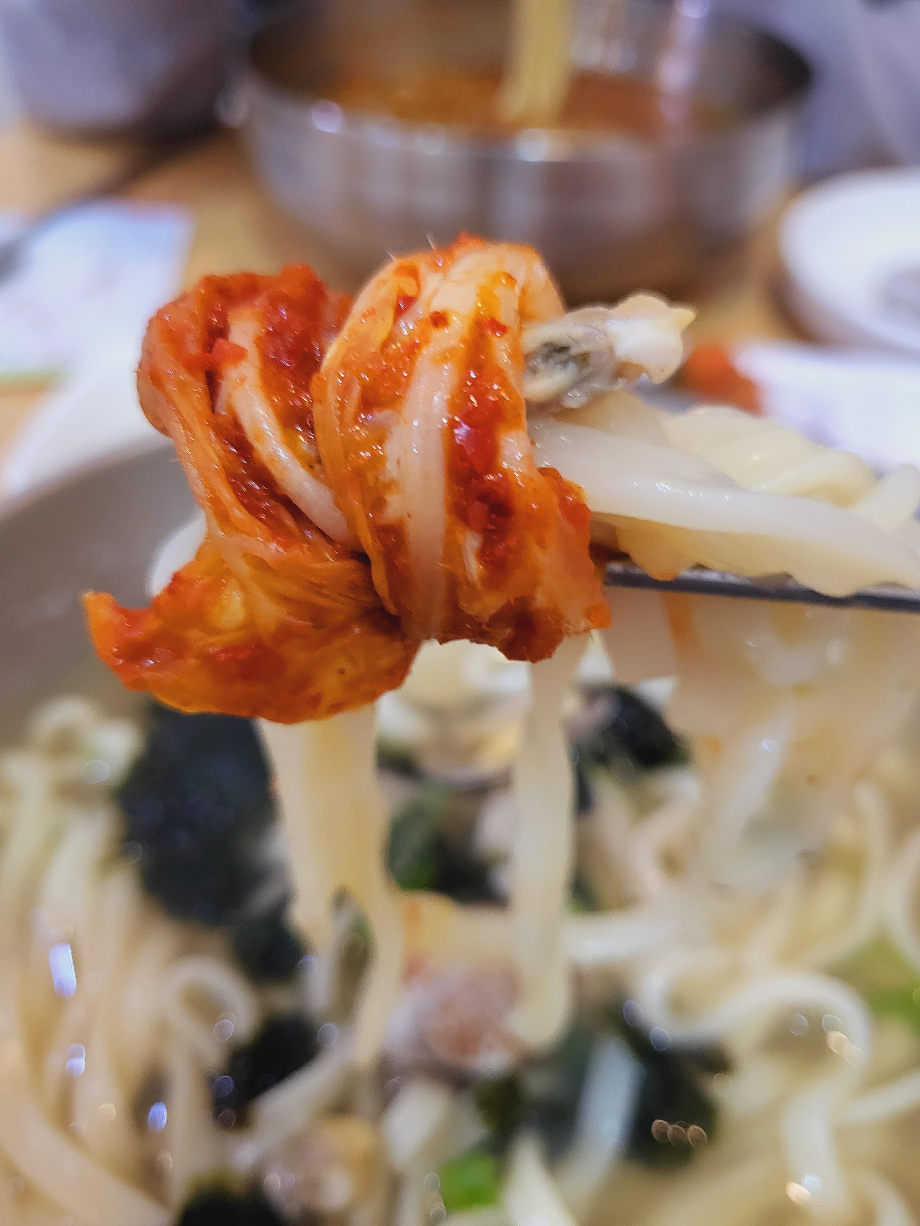바지락과 칼국수에 겉절이로 감싸서 우앙~~ 한입!!!!