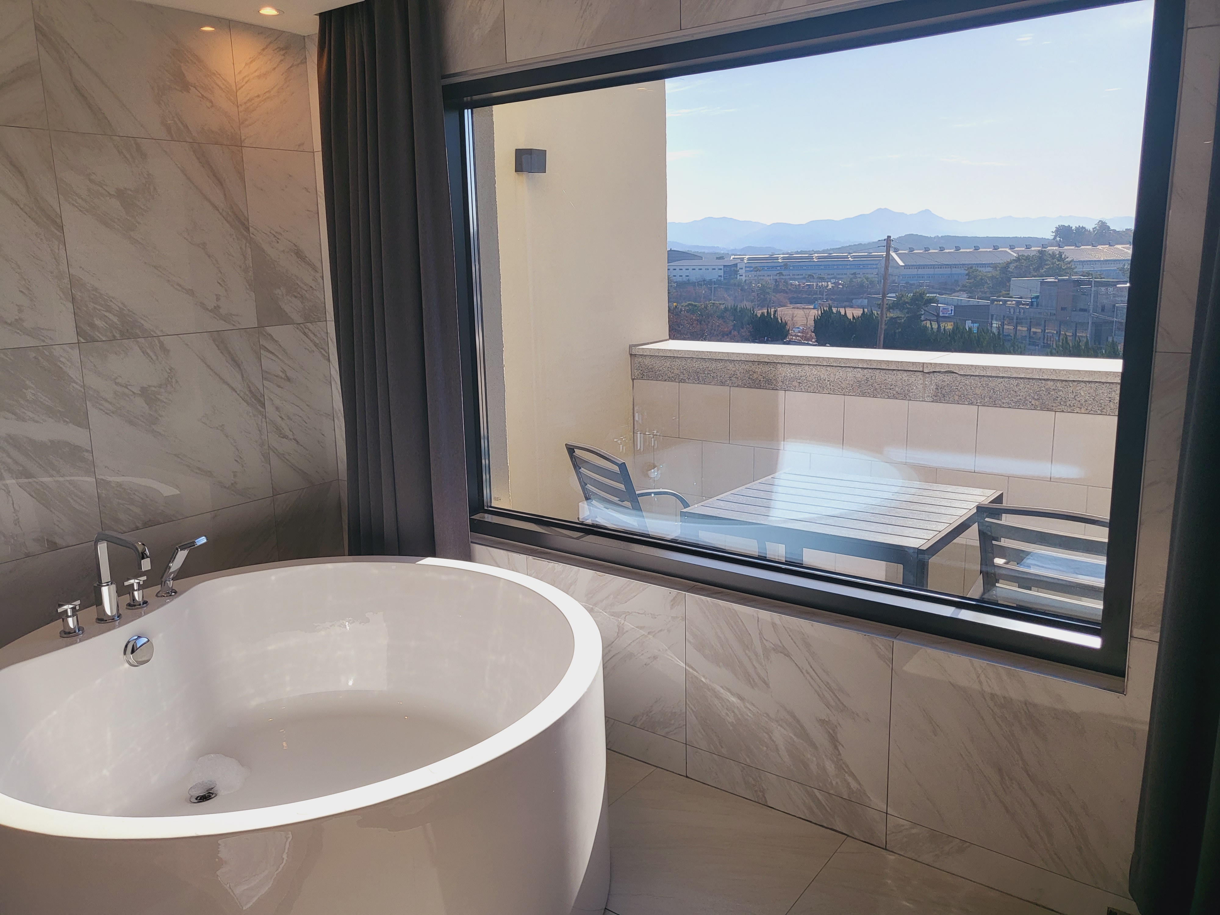 아침에는 욕조에서 입욕을 하고, 욕조에 들어앉으니 하늘이 보이더라구요!! 하늘보며 전말 마신 술독 한번 빼주고!!ㅎ ㅎ