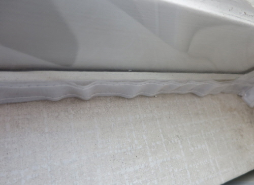 맞춤제작 방풍비닐은 특성상 늘어납니다. 하지만 벨크로는 늘어나지 않아요. 때문에 시공하게 되면 아래와 같이 자연스럽게 들뜸현상이 일어납니다. 이부분은 개선되어야 할거 같아요.
