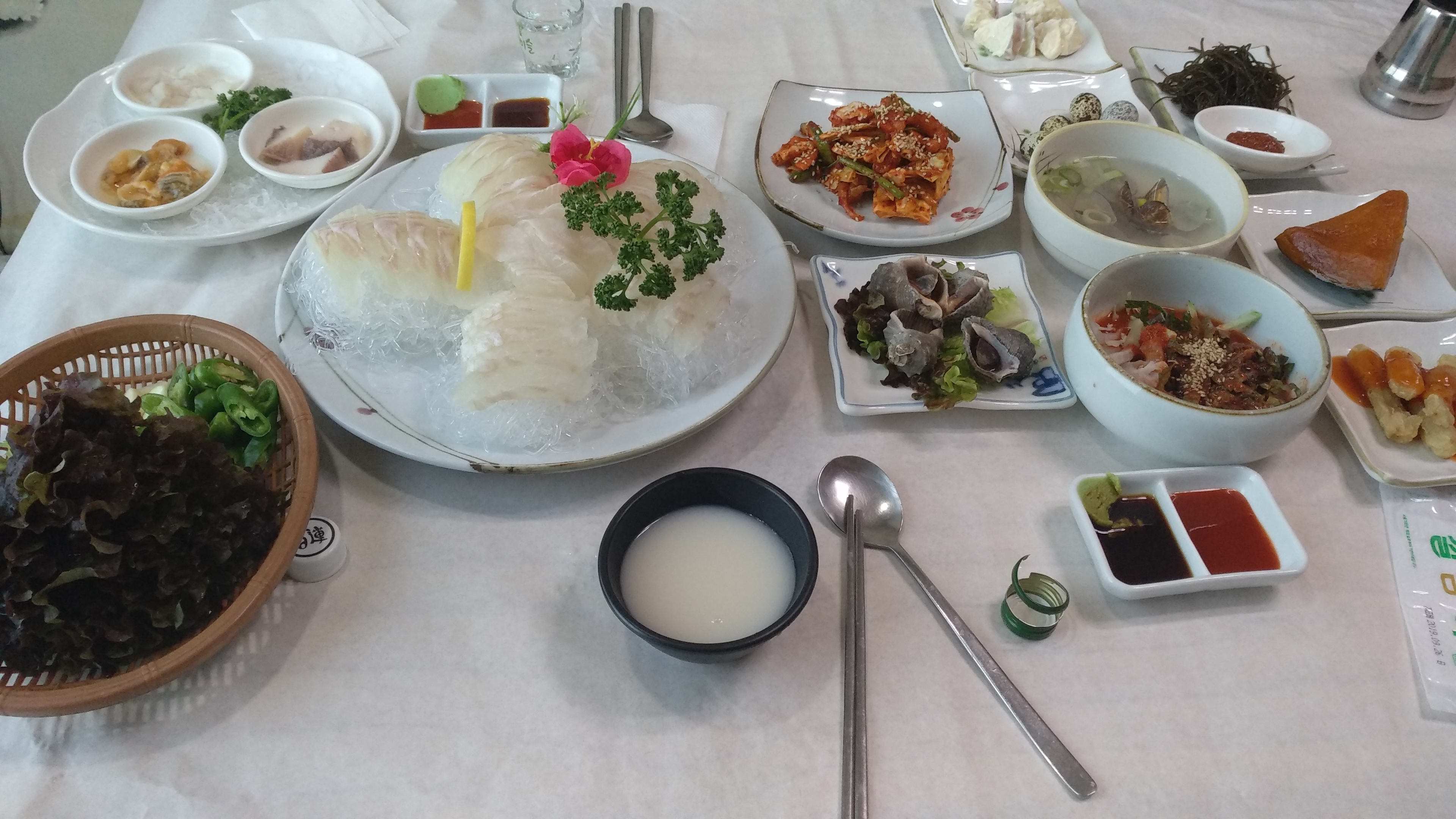 식사는 2명이라 2인메뉴를 시켰는데 50,000원이에요. 가격도 저렴하고 맛은 다른 횟집과 비슷한거 같아요. 특히 매운탕은 맛있었어요.