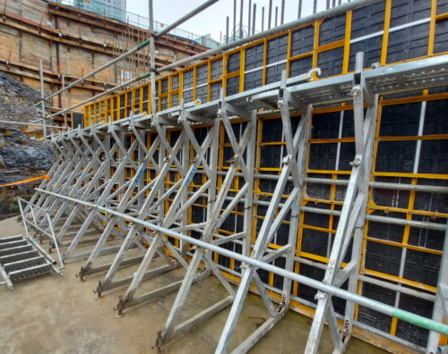 시공된 유로폼용 합판(콘판넬)